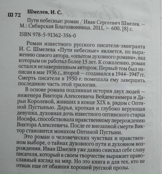 – Посоветовали почитать мне и Ивана Шмелёва, – делится своими книжными исследованиями наш читатель. – Если "Солнце мёртвых" показалось мне, как говорится, тяжеловатым, то роман "Пути небесные" впечатляет. Очень интересный! Читаю его и наслаждаюсь! Советую почитать.